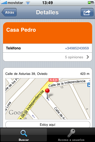 Si entramos en una sección, ordenará los negocios de más a menos cercano. En mi caso ha afinado muy bien: