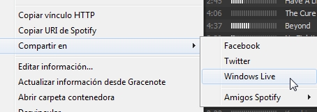 Esta versión también incorpora los tweets oficiales de Spotify a la pantalla de inicio del programa y algunos detalles como por ejemplo la posibilidad de compartir temas en Windows Live (el Mesenger de toda la vida).