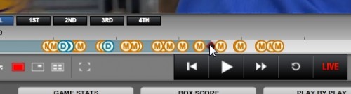 La opción condensed es muy interesante. Un resumen de lo más completo del partido, con las jugadas más interesantes pero saltando toda la morralla del medio. La opción Full-Game es precisamente eso, el partido al completo. Cuando vemos el partido al completo también puede haber partes aburridas. Sin problemas, con player de los partidos podemos pausar, saltar para adelante y movernos a través de una línea temporal del archivo como si lo tuviéramos descargado en el ordenador: