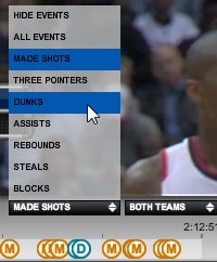¿Y todos esos iconitos que salen en la línea del tiempo? Pues ni más ni menos que las jugadas destacadas y que normalmente están disponibles 15 minutos después de que acabe cada cuarto. ¿Que queremos ver sólo los mates de Superman Howard y compañía? Simplemente doble click en uno de esos eventos: