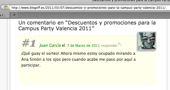 Lo único que tienes que hacer es informar a la Campus Party de que eres lector de Blogoff. Para ello, cuando accedas al sistema de compra de entradas, te pedirá que subas una captura de pantalla en la que se vea claramente: