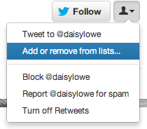 Lo que ocurre es que no tienes por qué seguir a la gente de esa lista. Si tu estás viendo el perfil de una persona como por ejemplo Daisy Lowe y quieres mantenerte al tanto de lo que escribe puedes: