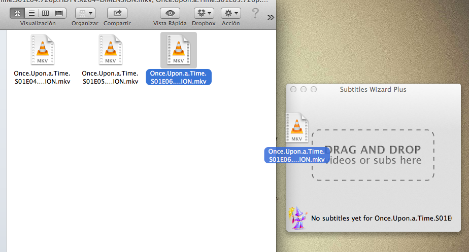 Subtitle Wizard busca automáticamente subtítulos para un archivo de vídeo determinada en función de su nombre y tamaño, y lo descarga a la misma carpeta donde está el vídeo con el mismo nombre y extensión srt. Vamos, te lo deja listo para enchufar el disco duro o pendrive a la tele.